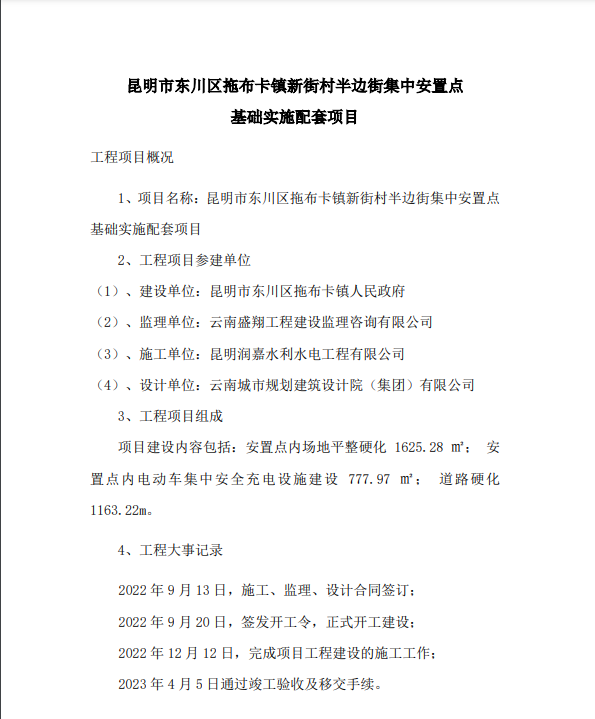 昆明市東川區(qū)拖布卡鎮(zhèn)新街村半邊街集中安置點(diǎn)基礎(chǔ)實(shí)施配套項(xiàng)目通過(guò)竣工驗(yàn)收