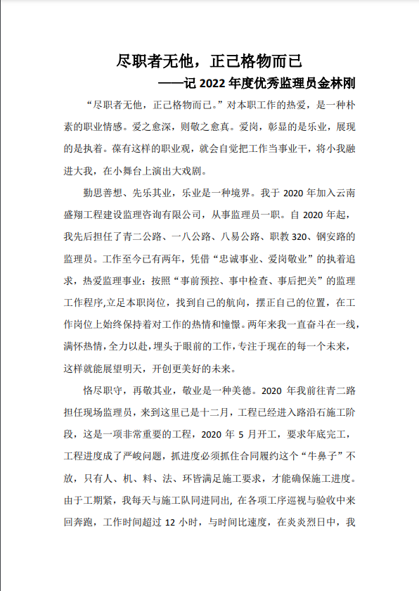 盡職者無他,正己格物而已 ——記2022年度優(yōu)秀監(jiān)理員金林剛