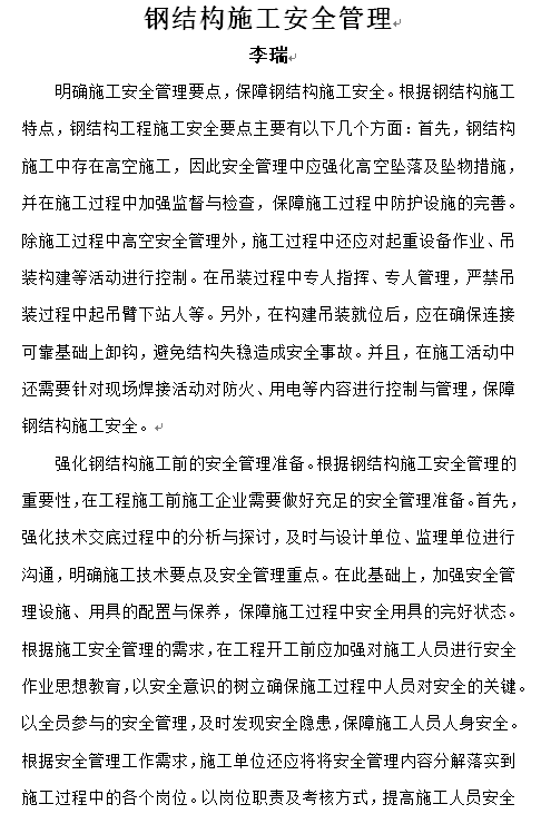 鋼結(jié)構(gòu)施工安全管理——李瑞