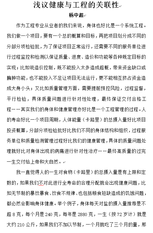 淺議健康與工程的關(guān)聯(lián)性——楊中超