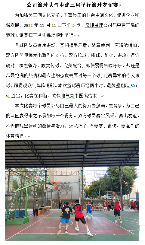 公司籃球隊(duì)與中建三局舉行籃球友誼賽