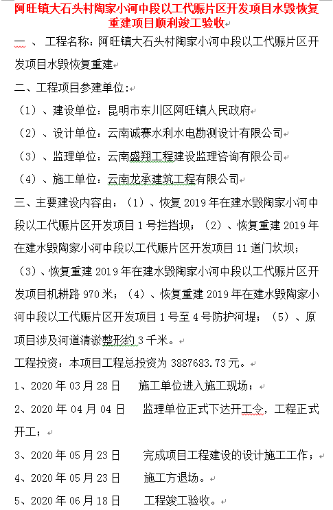 阿旺鎮(zhèn)大石頭村陶家小河中段以工代賑片區(qū)開(kāi)發(fā)項(xiàng)目水毀恢復(fù)重建項(xiàng)目順利竣工驗(yàn)收