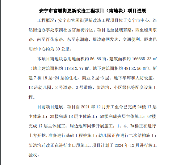 安寧市官廂街更新改造工程項(xiàng)目(南地塊)項(xiàng)目進(jìn)展
