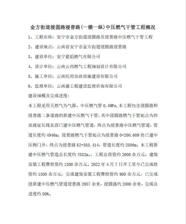 金方街道浸圓路浸普路(一橫一縱)中壓燃氣干管工程概況