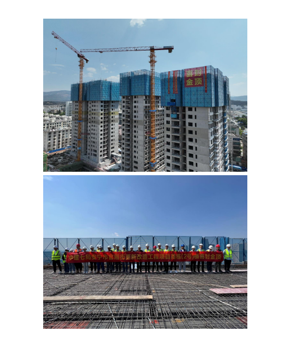 安寧市官廂街更新改造工程項(xiàng)目(南地塊)首棟高層建筑主體結(jié)構(gòu)封頂