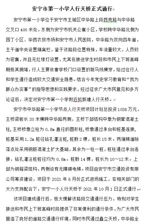安寧市中華路第一小學(xué)節(jié)點(diǎn)人行天橋正式通行