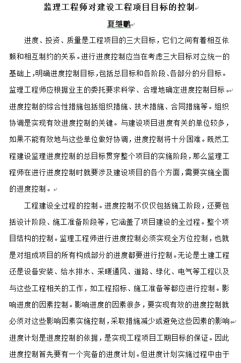 監(jiān)理工程師對建設(shè)工程項目目標(biāo)的控制——夏繼鵬