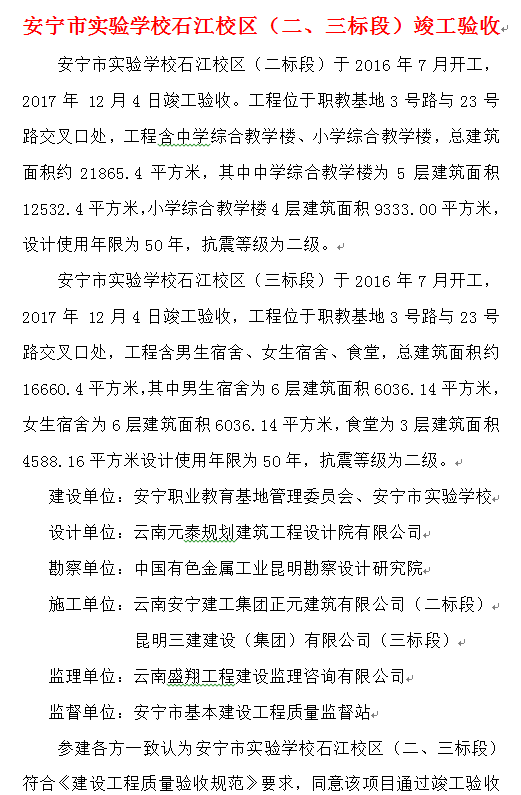 安寧市實(shí)驗(yàn)學(xué)校石江校區(qū)(二、三標(biāo)段)竣工驗(yàn)收