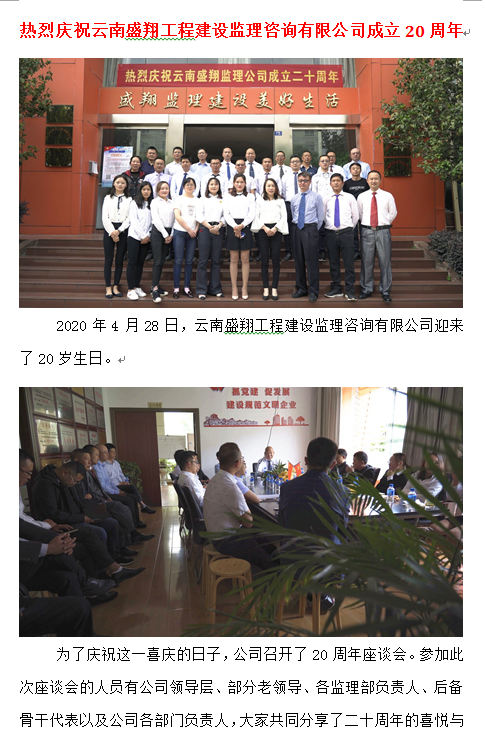 熱烈慶祝云南盛翔工程建設(shè)監(jiān)理咨詢(xún)有限公司成立20周年