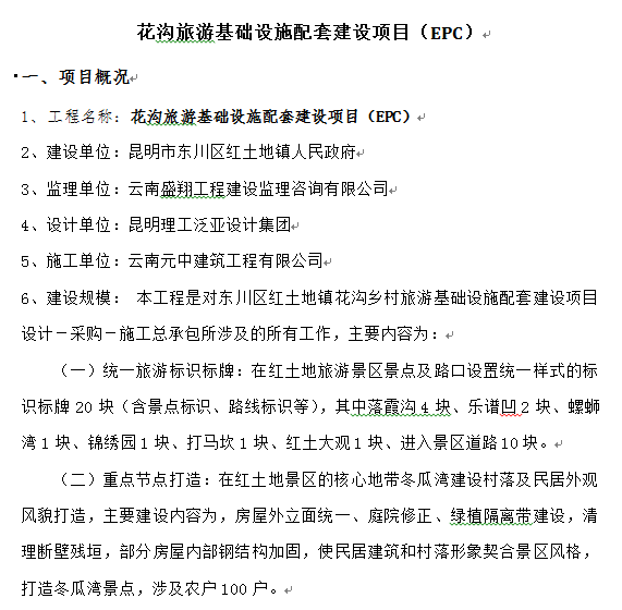 花溝旅游基礎(chǔ)設(shè)施配套建設(shè)項目(EPC)
