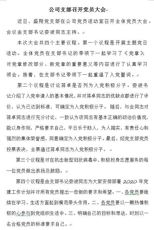 公司支部召開黨員大會(huì)