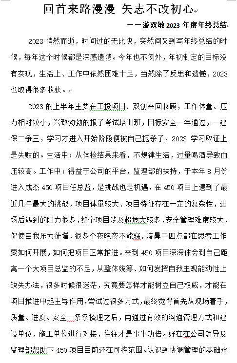 回首來路漫漫 矢志不改初心 ——游雙敏2023年度年終總結(jié)