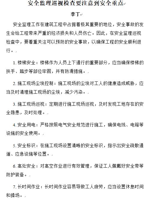 安全監(jiān)理巡視檢查要注意到安全重點——李丁