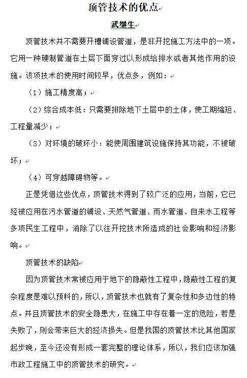 頂管技術的優(yōu)點——武繼生