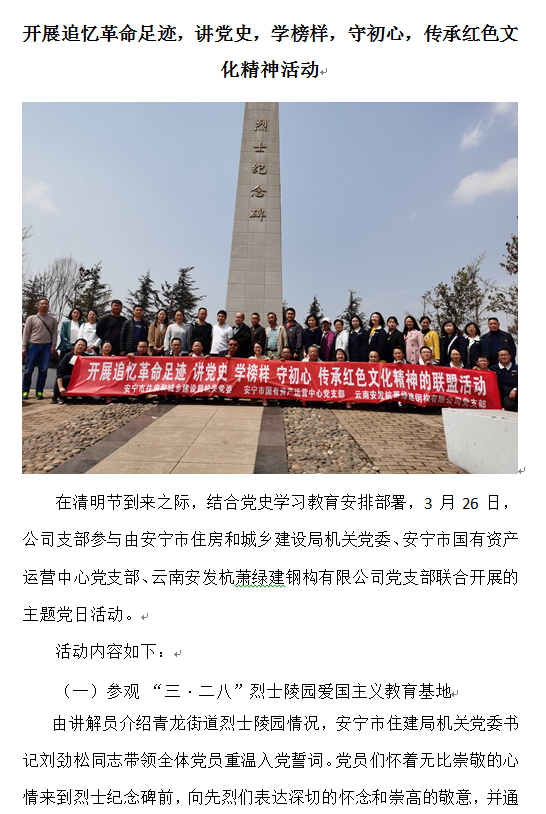 開展追憶革命足跡,講黨史,學(xué)榜樣,守初心,傳承紅色文化精神活動(dòng)