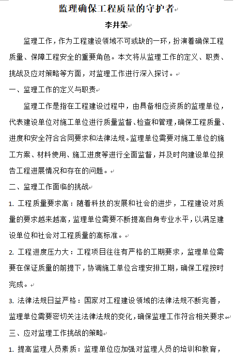 監(jiān)理確保工程質(zhì)量的守護者——李井榮