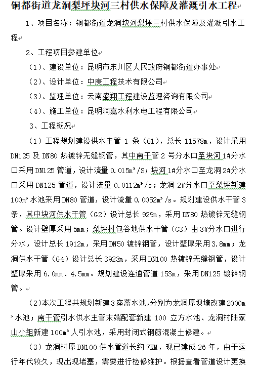 銅都街道龍洞梨坪塊河三村供水保障及灌溉引水工程