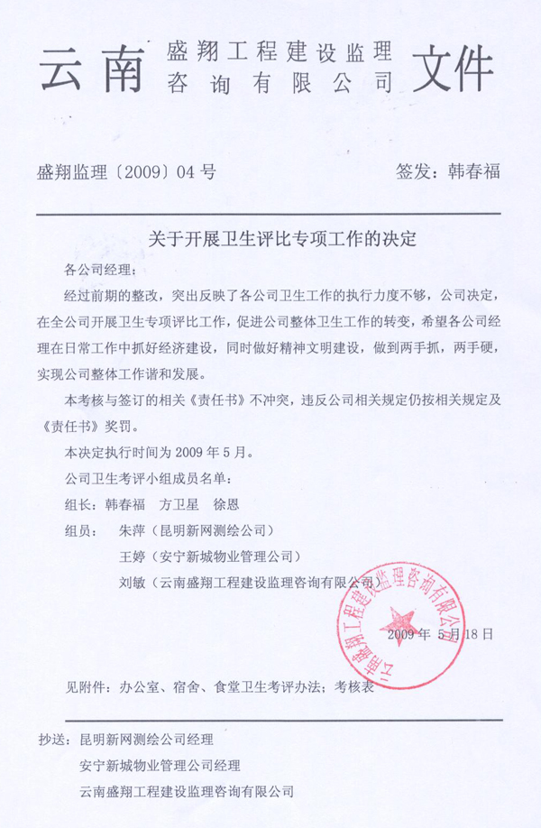 關(guān)于開展衛(wèi)生評(píng)比專項(xiàng)工作的決定