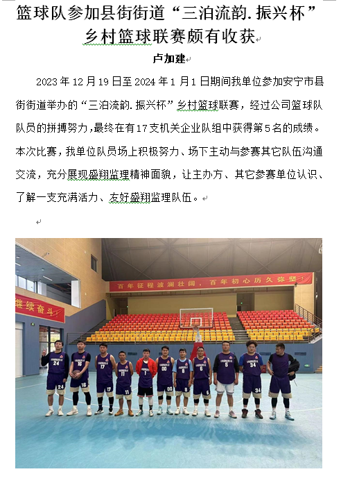 活力賽場 賽出團結 ——盛翔監(jiān)理公司和藍焰燃氣公司開展籃球友誼賽