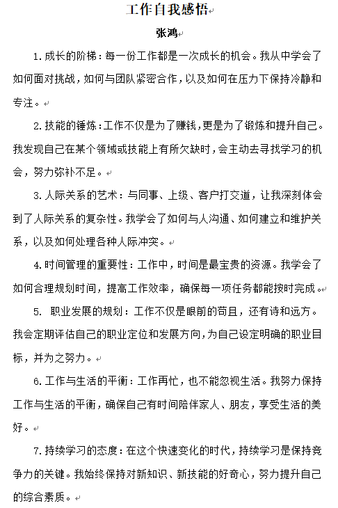 工作自我感悟——張鴻