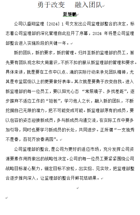 勇于改變 融入團(tuán)隊(duì)——夏繼鵬