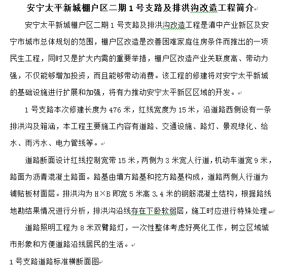 安寧太平新城棚戶區(qū)二期1號支路及排洪溝改造工程