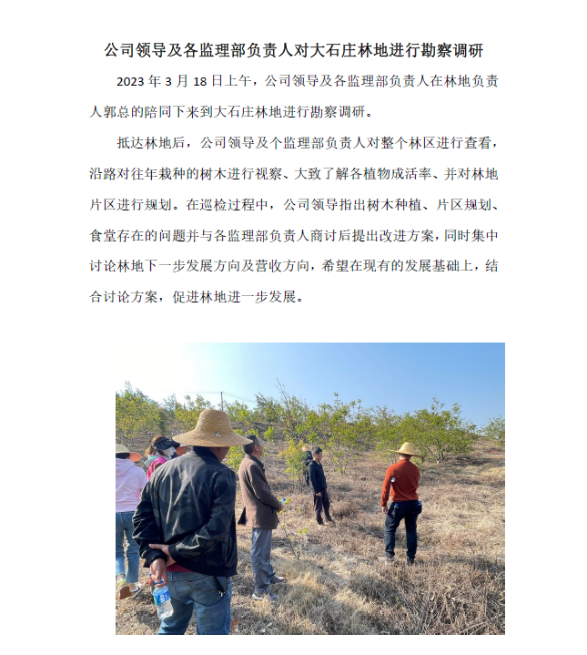 公司領(lǐng)導(dǎo)及各監(jiān)理部負(fù)責(zé)人對(duì)大石莊林地進(jìn)行勘察調(diào)研