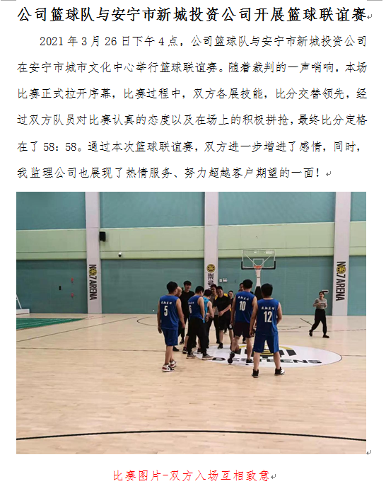 公司籃球隊(duì)與安寧市新城投資公司開展籃球聯(lián)誼賽