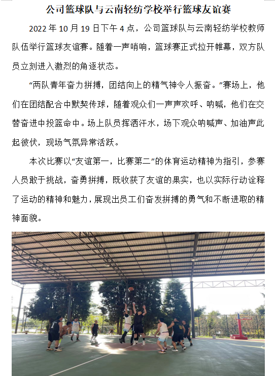 公司籃球隊(duì)與云南輕紡學(xué)校舉行籃球友誼賽