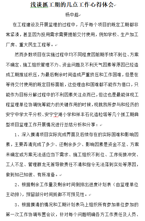 淺談抓工期的幾點工作心得體會——楊中超