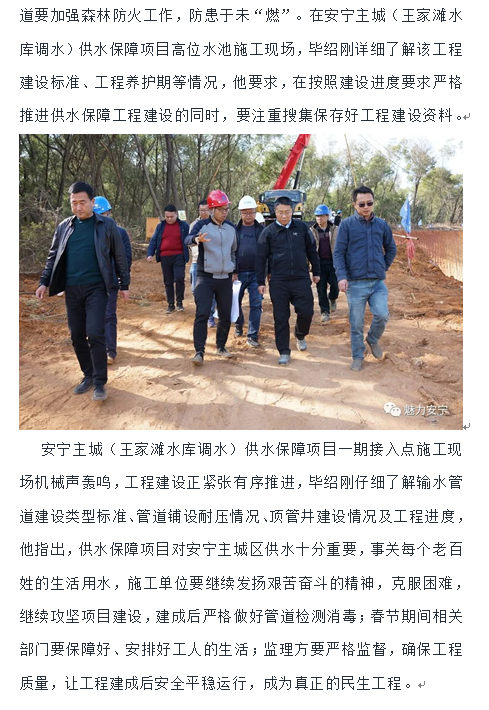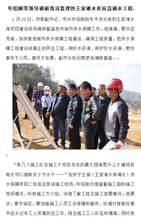畢紹剛等領(lǐng)導(dǎo)調(diào)研我司監(jiān)理的王家灘水庫(kù)應(yīng)急調(diào)水工程