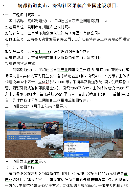• 銅都街道炎山、深溝社區(qū)果蔬產(chǎn)業(yè)園建設(shè)項(xiàng)目