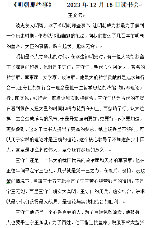 《明朝那些事》2023年12月16日讀書會(huì)——王文云