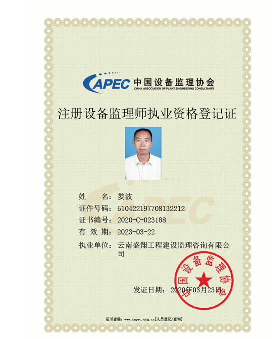 喜報(bào)—熱烈祝賀我公司婁波和楊中超兩位同志取得注冊(cè)設(shè)備監(jiān)理師職業(yè)資格