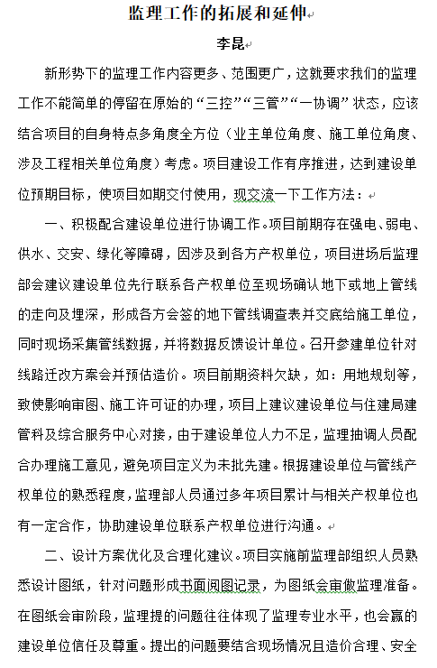 監(jiān)理工作的拓展和延伸——李昆