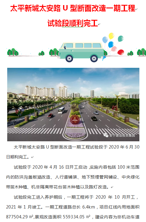 太平新城太安路U型斷面改造一期工程 試驗(yàn)段順利完工