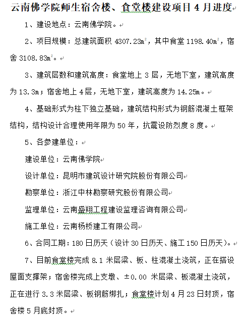 • 云南佛學(xué)院師生宿舍樓、食堂樓建設(shè)項(xiàng)目4月進(jìn)度