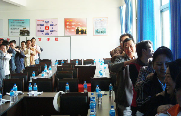 ??? 2009年4月10日,云南盛翔針對中層管理的“西點(diǎn)領(lǐng)導(dǎo)力模式培訓(xùn)”如期開課,來自監(jiān)理公司、測繪公司、物管公司、招標(biāo)公司以及龍?jiān)瓷譁厝镜耐陆?0人齊聚一堂,共同學(xué)習(xí)。本期課程為期兩天半時(shí)間,整個(gè)課程除了“領(lǐng)導(dǎo)力”學(xué)習(xí)外,還開展了考驗(yàn)團(tuán)隊(duì)協(xié)作精神的拓展活動(dòng)和一堂觸動(dòng)人性深處的“心靈之旅”體驗(yàn)。
