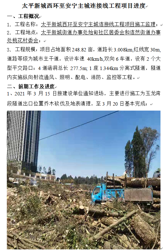 太平新城西環(huán)至安寧主城連接線工程項(xiàng)目 施工進(jìn)度簡介