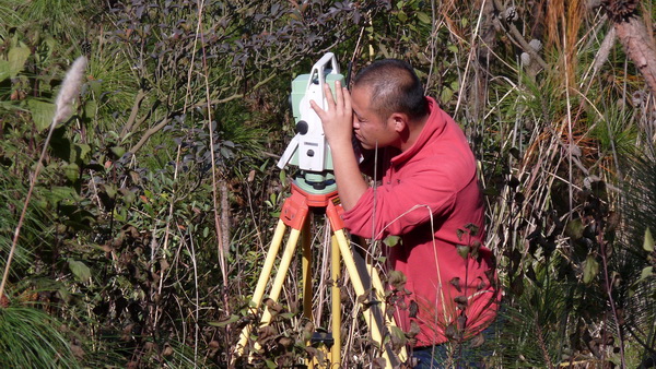測繪人員的儀器已經(jīng)擺在了山頭上。