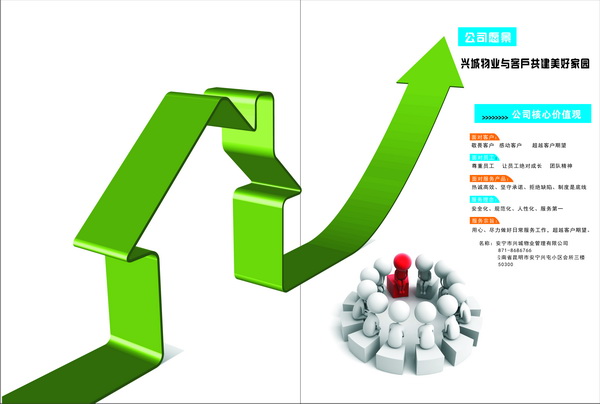 公司以興城物業(yè)建設(shè)美好家園為企業(yè)愿景。以面對客戶:敬畏客戶、感動客戶、超越客戶期望;面對員工:尊重員工、讓員工絕對成長、團隊精神;面對管理的產(chǎn)品:熱誠高效、堅守承諾、拒絕缺陷、制度是底線為企業(yè)核心價值觀。不斷引進和學習先進的管理模式,不斷改進管理工作,使興城物業(yè)管理更符合業(yè)主(住戶)需求。