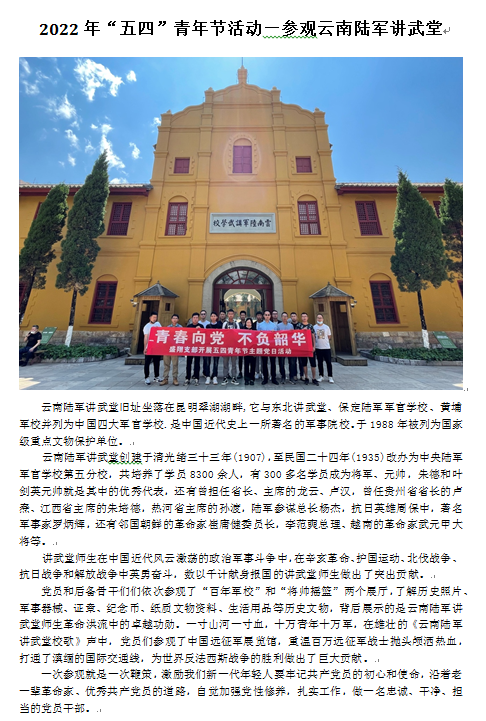 公司黨支部聯(lián)合后備骨干組織參觀云南陸軍講武堂