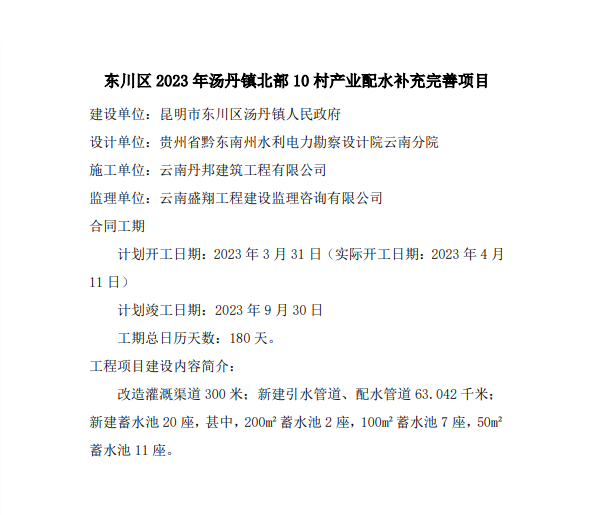 東川區(qū)2023年湯丹鎮(zhèn)北部10村產(chǎn)業(yè)配水補(bǔ)充完善項目