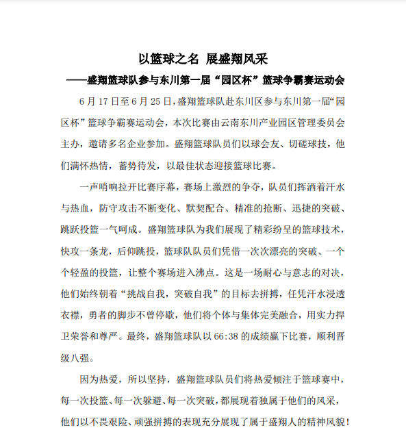 以籃球之名 展盛翔風采 ——盛翔籃球隊參與東川第一屆“園區(qū)杯”籃球爭霸賽運動會