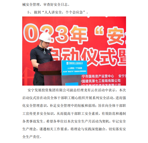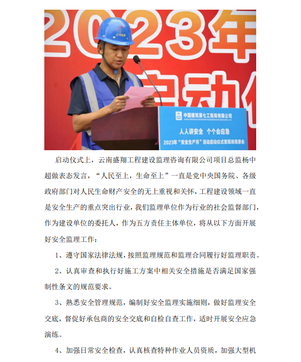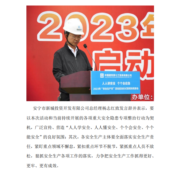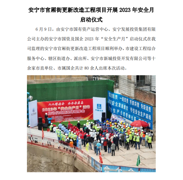 安寧市官廂街更新改造工程項目開展2023年安全月啟動儀式