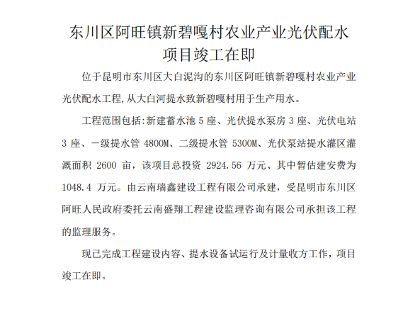 東川區(qū)阿旺鎮(zhèn)新碧嘎村農(nóng)業(yè)產(chǎn)業(yè)光伏配水項(xiàng)目竣工在即