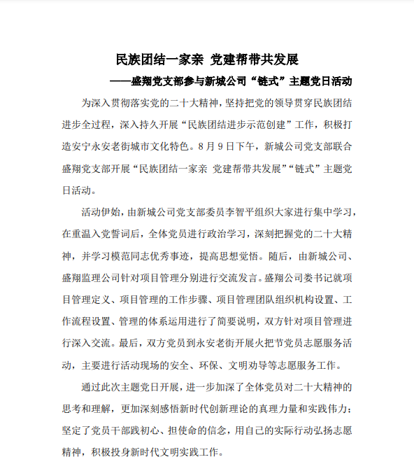 民族團結(jié)一家親 黨建幫帶共發(fā)展 ——盛翔黨支部參與新城公司“鏈式”主題黨日活動