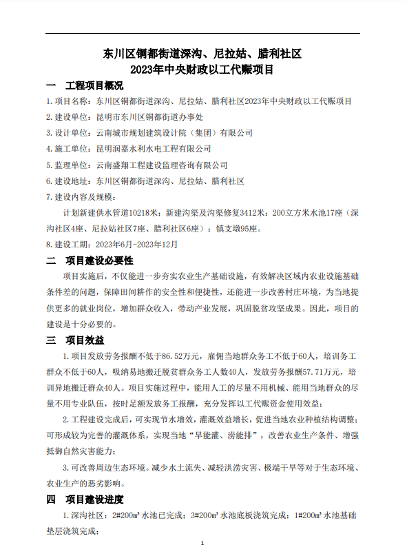 東川區(qū)銅都街道深溝、尼拉姑、臘利社區(qū) 2023年中央財政以工代賑項目