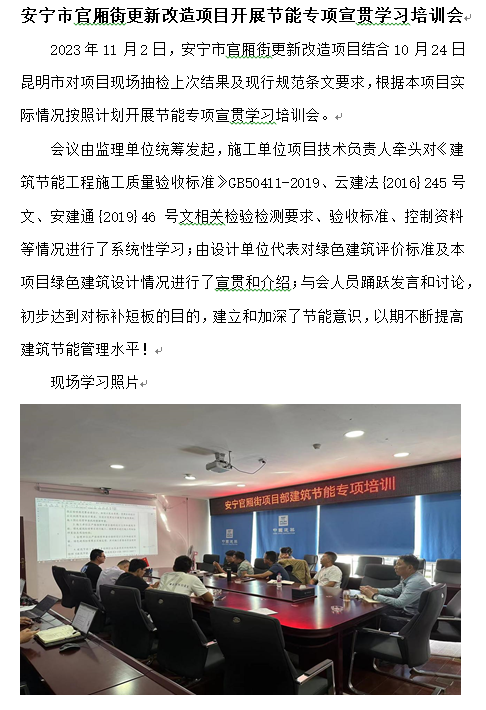 安寧市官廂街更新改造項(xiàng)目開展節(jié)能專項(xiàng)宣貫學(xué)習(xí)培訓(xùn)會(huì)