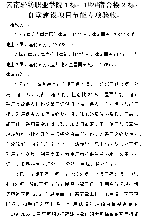 云南輕紡職業(yè)學(xué)院1標(biāo):1#2#宿舍樓2標(biāo):食堂建設(shè)項目節(jié)能專項驗收